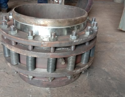 免維護式旋轉補償器的密封填料采用目前國內先進的填料,耐溫-60℃—800℃,由于補償器的內套管外部和外套管內部焊有擋環,兩擋環之間裝設有在減小摩擦力的(滾動環)滾珠,減小了內套管對密封填料的磨損。且由于補償器裝置上多組彈簧的自然張力推壓著填料壓蓋法蘭,使磨損極為輕微的密封填料永遠處于緊湊狀態,從而使管道中的液體或氣體介質不產生泄漏,當填料磨損量大時,彈簧張力無法滿足調整,可用外力對彈簧壓緊進行調整從而達到不停止工作狀態下達到所要求的密封效果,所以本產品克服了其它同類產品的不足,原有的旋轉式、套管式補償器當填料磨損后無法得到及時補償調整從而導致補償器的密封性能下降直至產生泄漏,而且填料磨損量大后必須從管線上拆下產品打開加補填料從而影響了管線的運行,影響用戶的正常生產。